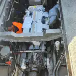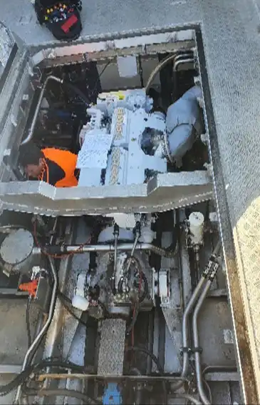 Platinum is a Mussel farm work vessel that was repowered after the failure of the V12 MAN. The original transmission was reused and the hydraulics remounted on the front using a live drive bell housing. New stainless exhaust and existing K4 controls. The vessel performs extremely well and is saving fuel by the ton. At the time I write this it has had its 1000hr service and has a perfect performance record to date. NOTE from customer. Thank you for a great engine which is giving us great service.